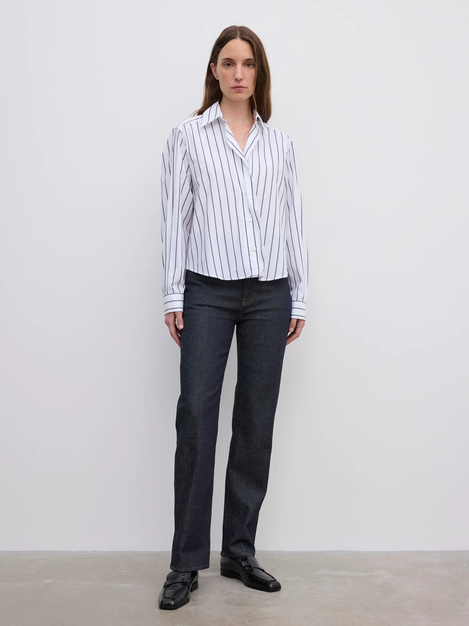 • Load image into Gallery viewer, DAGMAR Cropped Shirt, White/Black