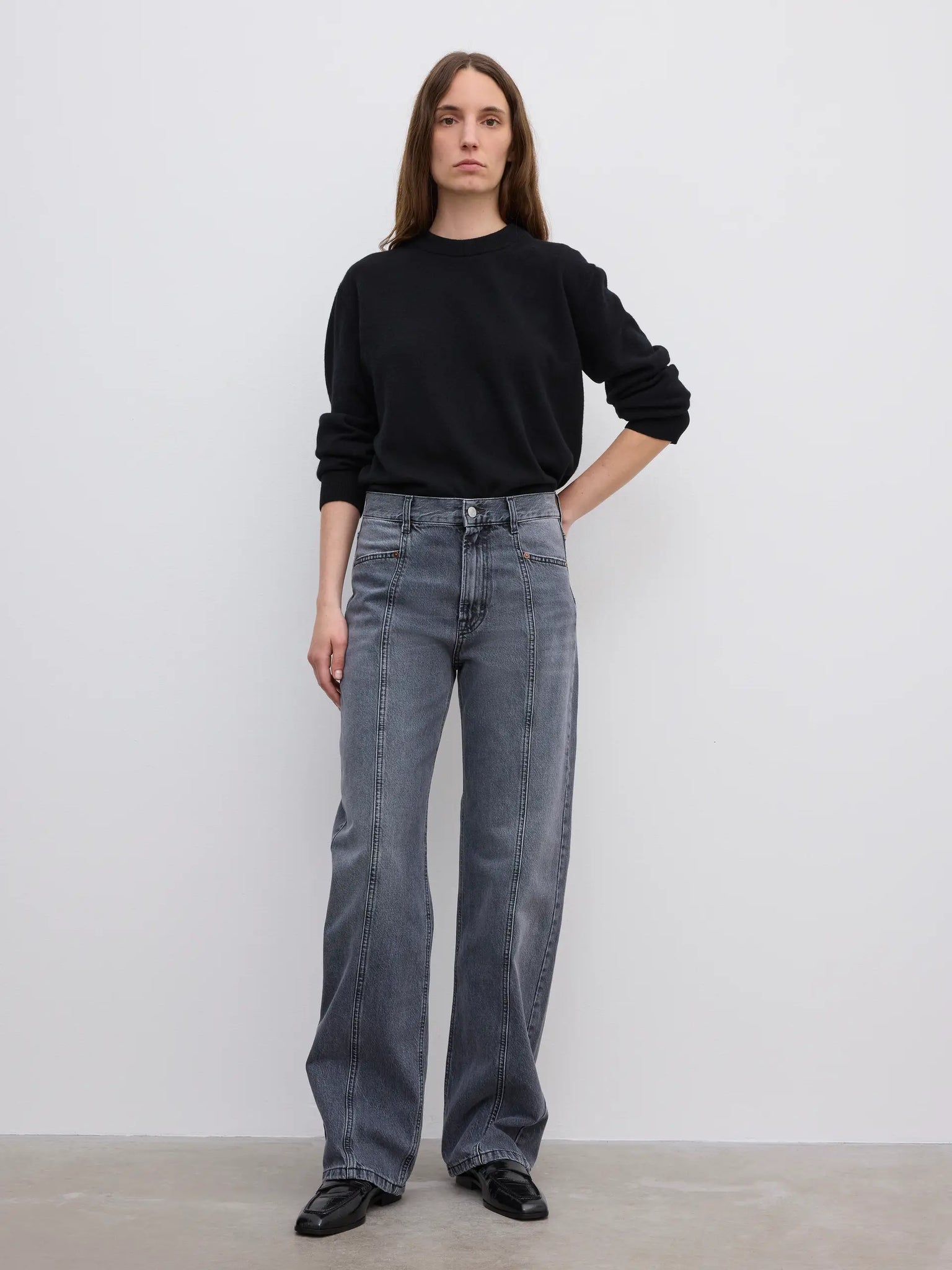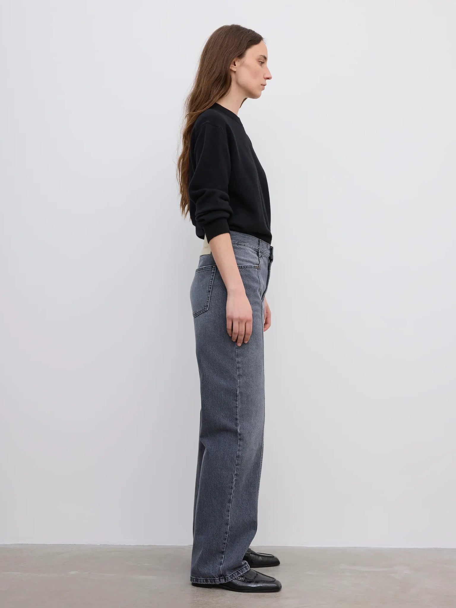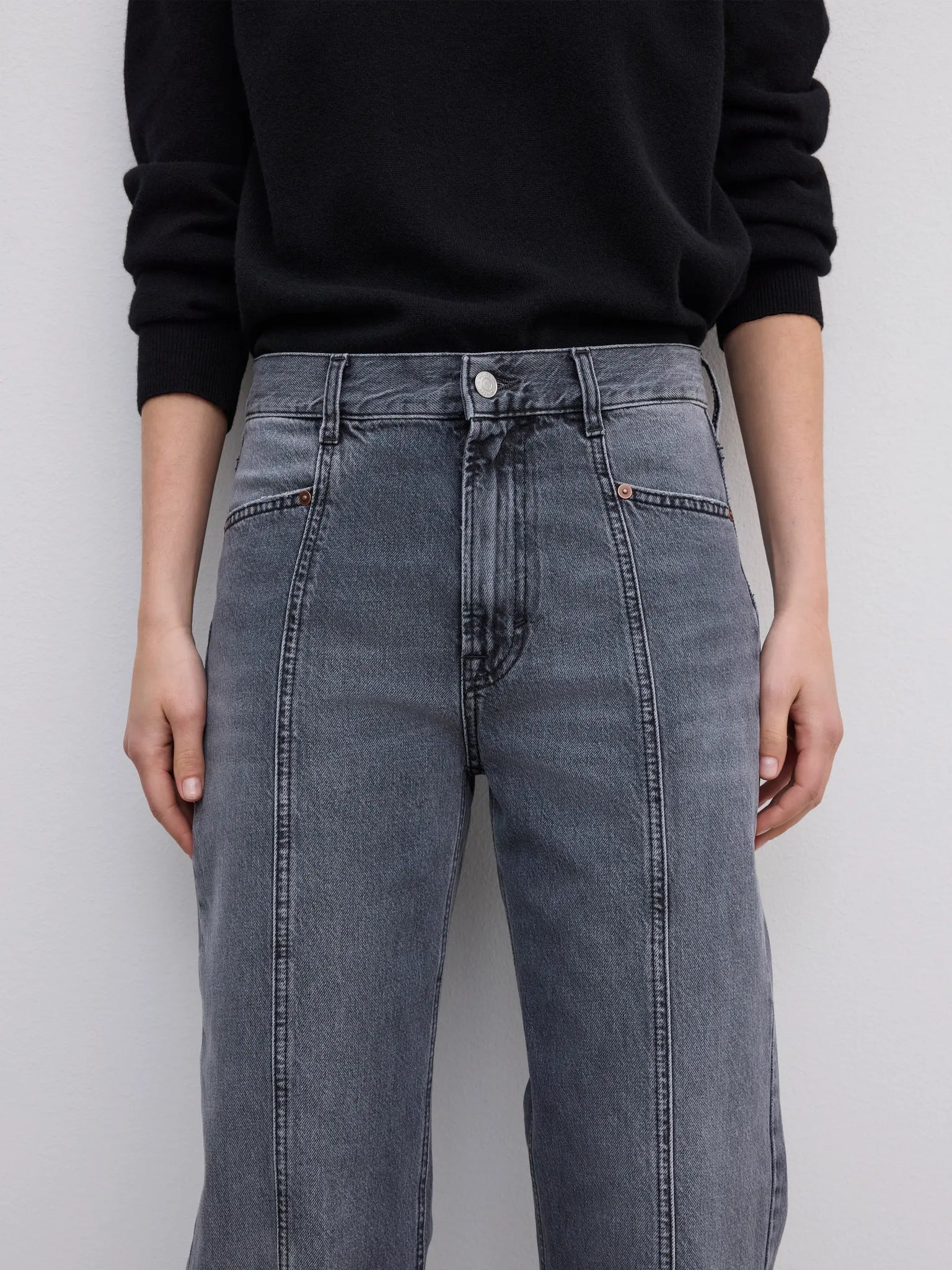 A mid-rise jean in 100% organic cotton with a straight, wide-leg frame and top-stitch detailing to the front. Made in Italy. Oversized in fit, many choose to size down one size.